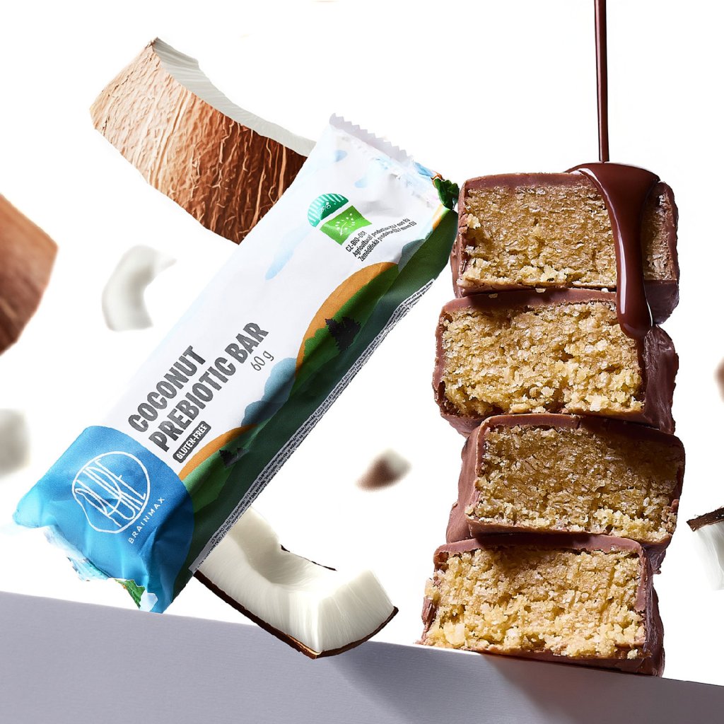 BRAINMAX Pure Coconut Prebiotic Bar, prebiotická tyčinka, kokos, BIO