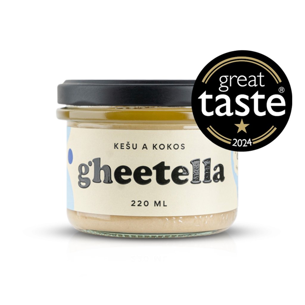 Kešu 55 %, kokos, med, ghee-máselný tuk 20 %.