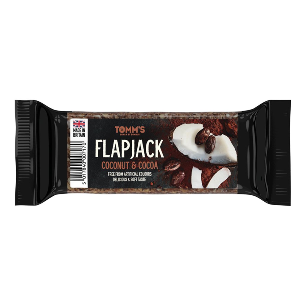 Flapjack Tomm´s je pečená ovesná tyčinka, vyrobená v Anglii dle originální receptury. Díky vysokému podílu těch nejkvalitnějších ovesných vloček plně zasytí a dodá potřebnou energii kdykoliv během dne. Je ideální svačinkou, kterou můžete mít vždy po ruce. Flap Jacky Tomm´s mají jemnou, lahodnou chuť, neobsahují umělá barviva ani aromata a jsou vhodné pro vegetariány.